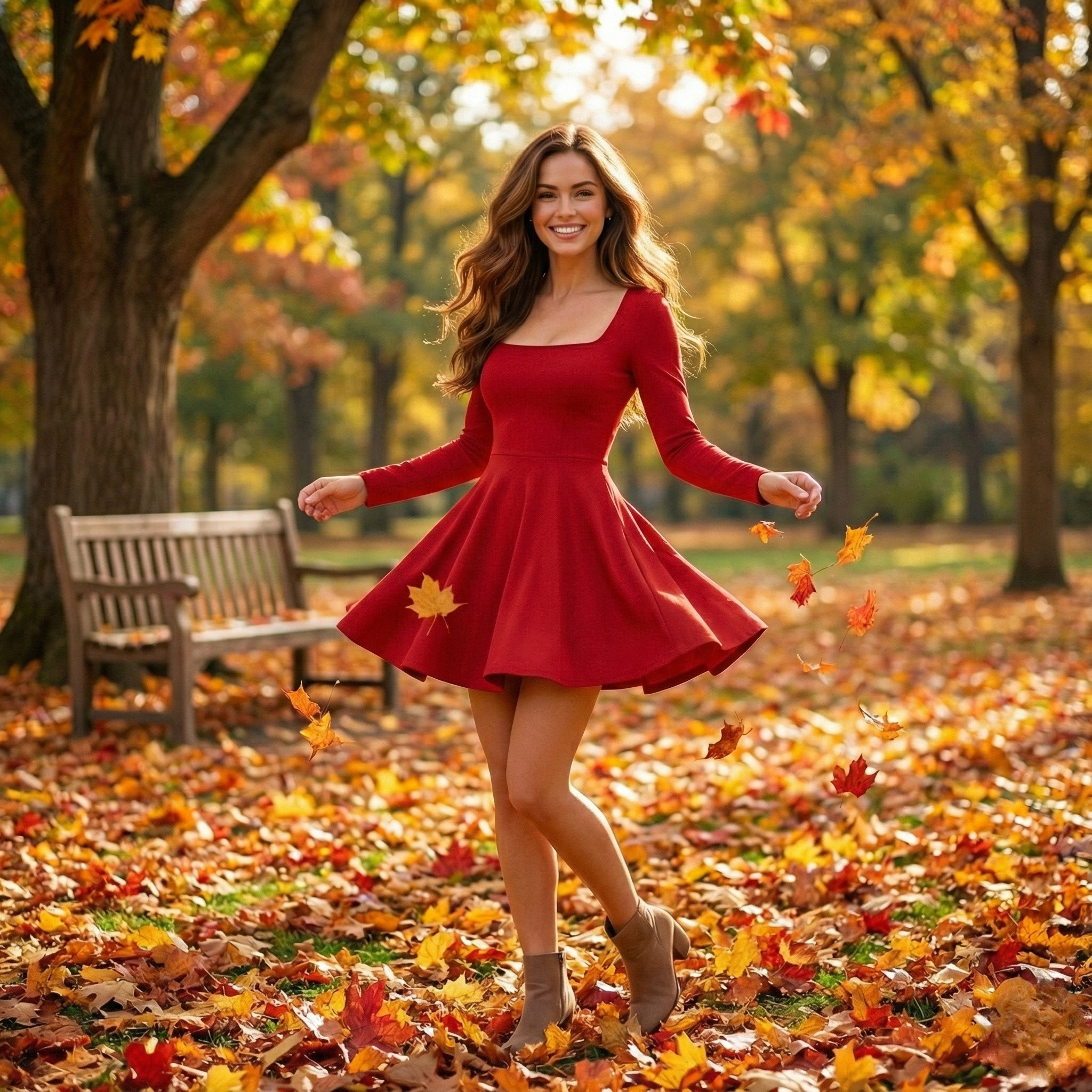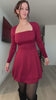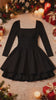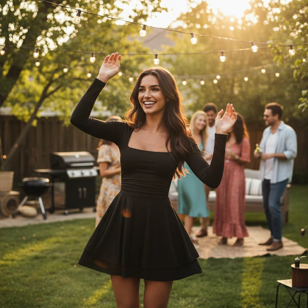The on-trend square neckline frames the face beautifully, while the long sleeves provide elegant coverage suitable for cooler seasons. Finished with a flowing ruffle hem that adds movement to the skirt, this dress is crafted from a high-stretch, breathable blend for all-night comfort. It is an ideal choice for wedding guests, holiday gatherings, and semi-formal occasions.