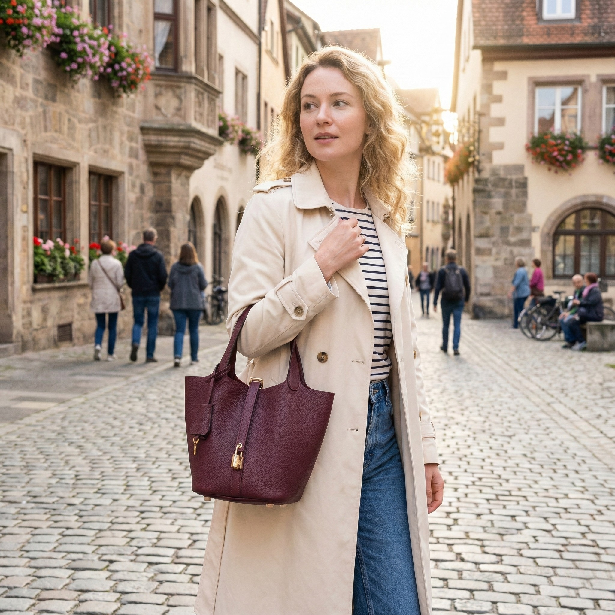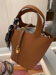 What sets this bag apart is the distinctive twist-lock feature, which adds a touch of metallic sophistication while ensuring your belongings stay secure. Versatile and chic, its minimalist aesthetic pairs perfectly with any outfit, making it the ideal companion for work, shopping, or casual weekend outings in any season.