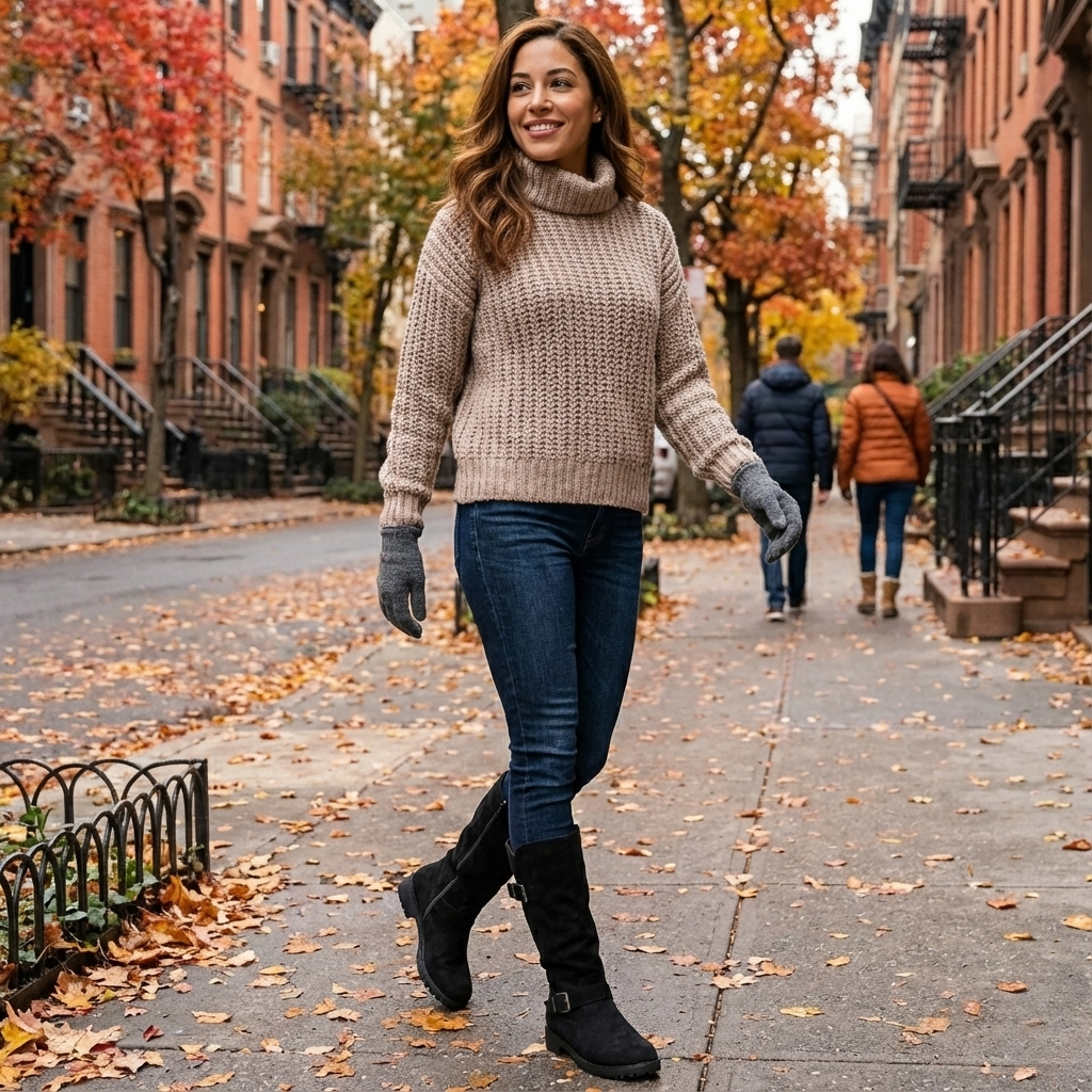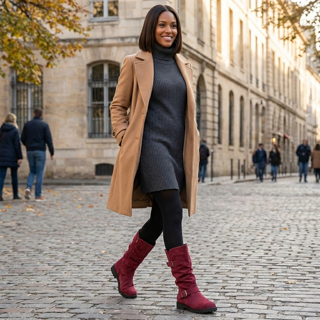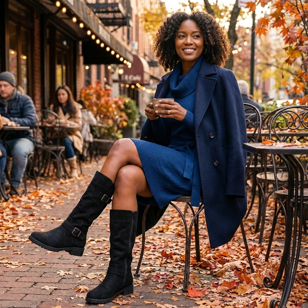 Step into the perfect blend of cozy comfort and rugged chic. We designed The Knit cuff buckle boots to be your daily go-to for effortless cool weather style. Defined by its mixed-texture design, it features a soft faux suede body accented by a warm, ribbed knit cuff that hugs the calf. The double buckle detailing adds a touch of edge, while the 3.5cm low block heel ensures stability and all-day wearability without fatigue. Whether styled with skinny jeans tucked in or paired with a flowing midi skirt, these boots offer a leg-elongating look with the comfort of a slipper.